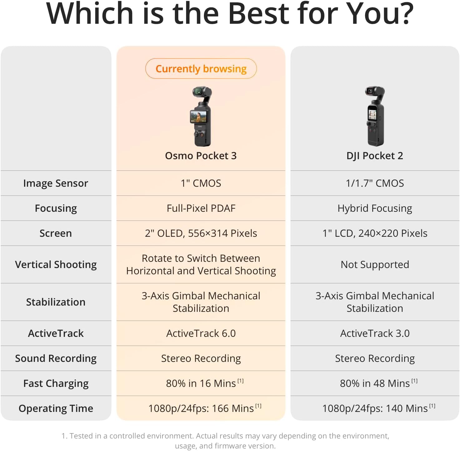 - Ultra-Steady Footage - Say goodbye to shaky videos. Osmo Pocket 3's advanced 3-axis mechanical stabilization delivers superb stability. Enjoy smooth footage while dancing, chasing pets, or vlogging.